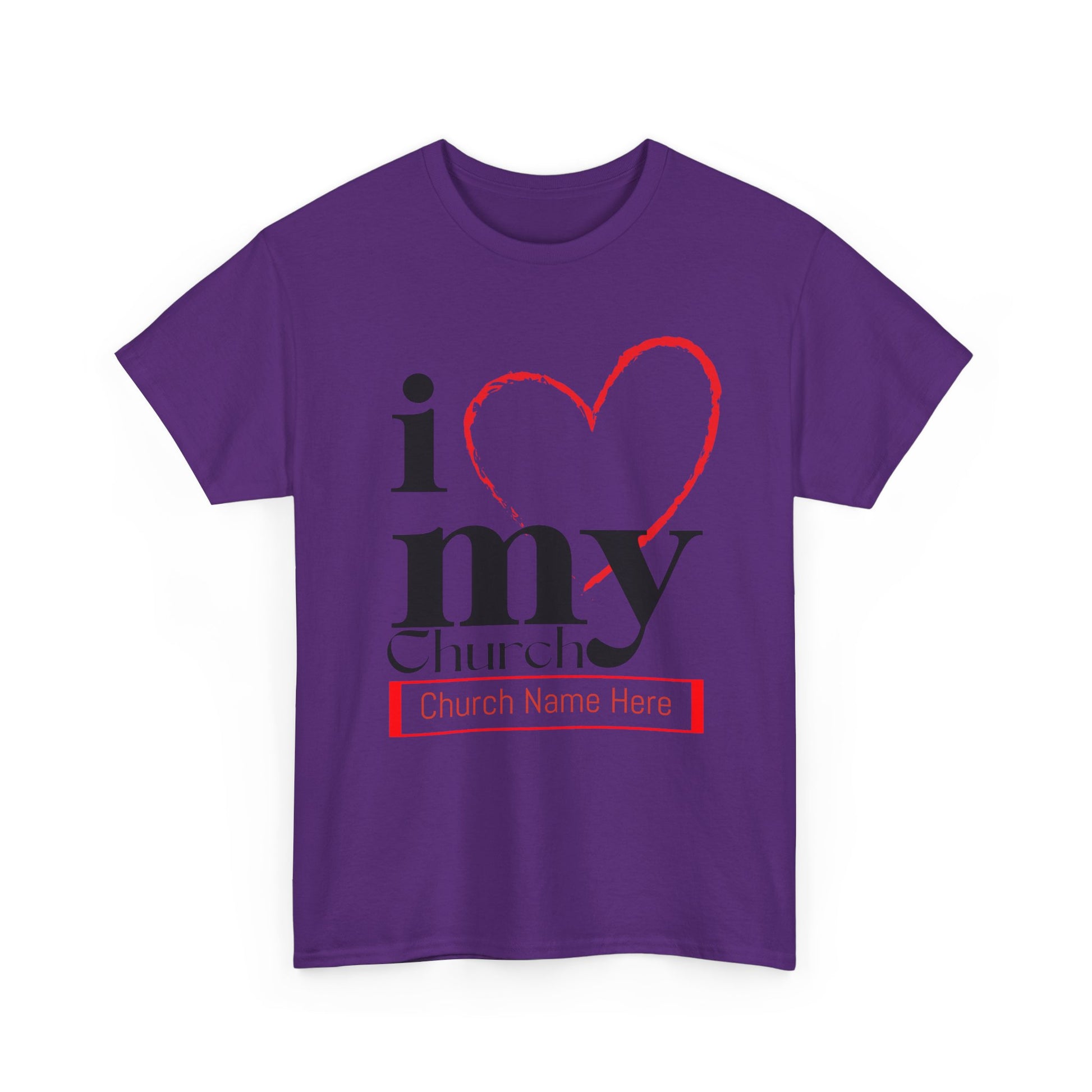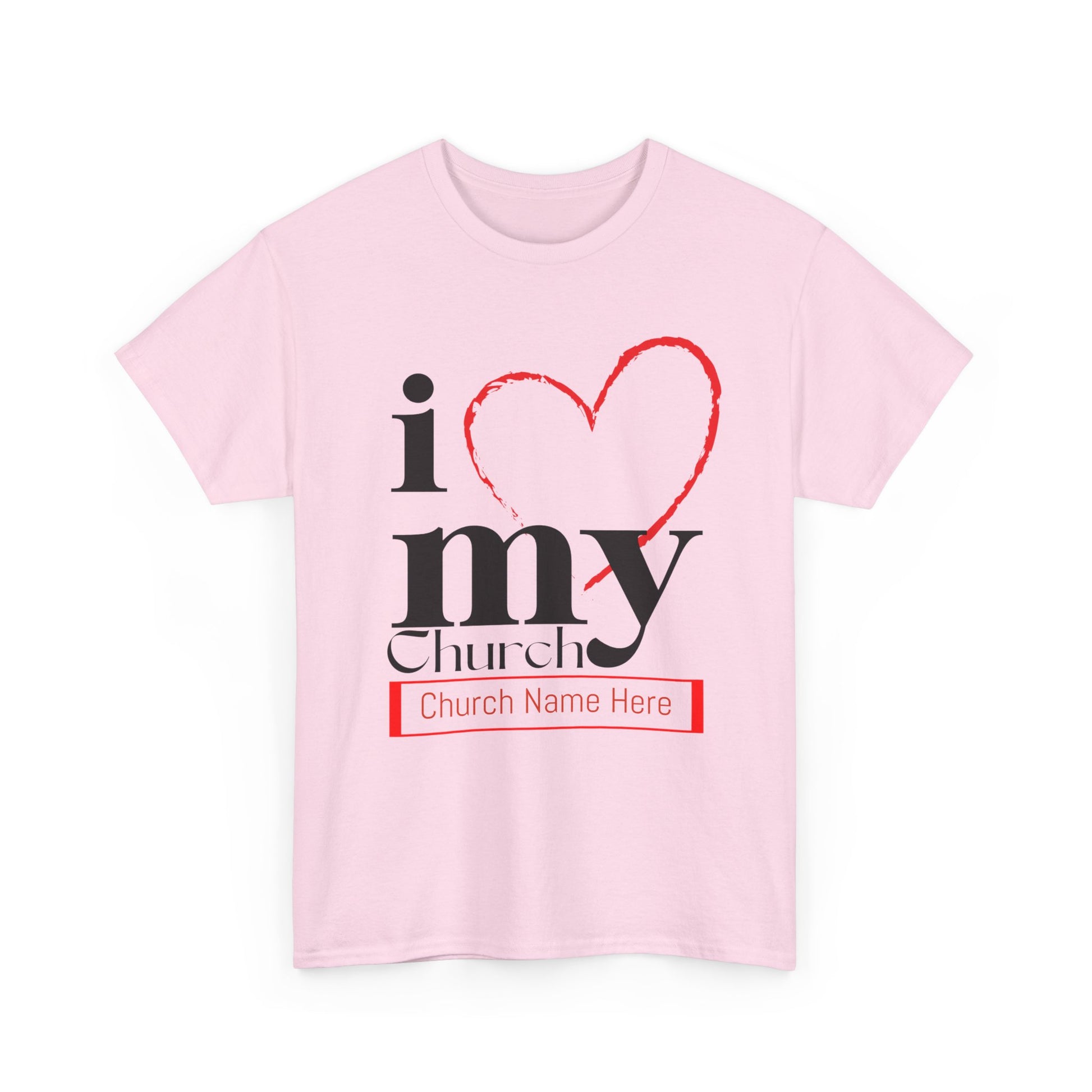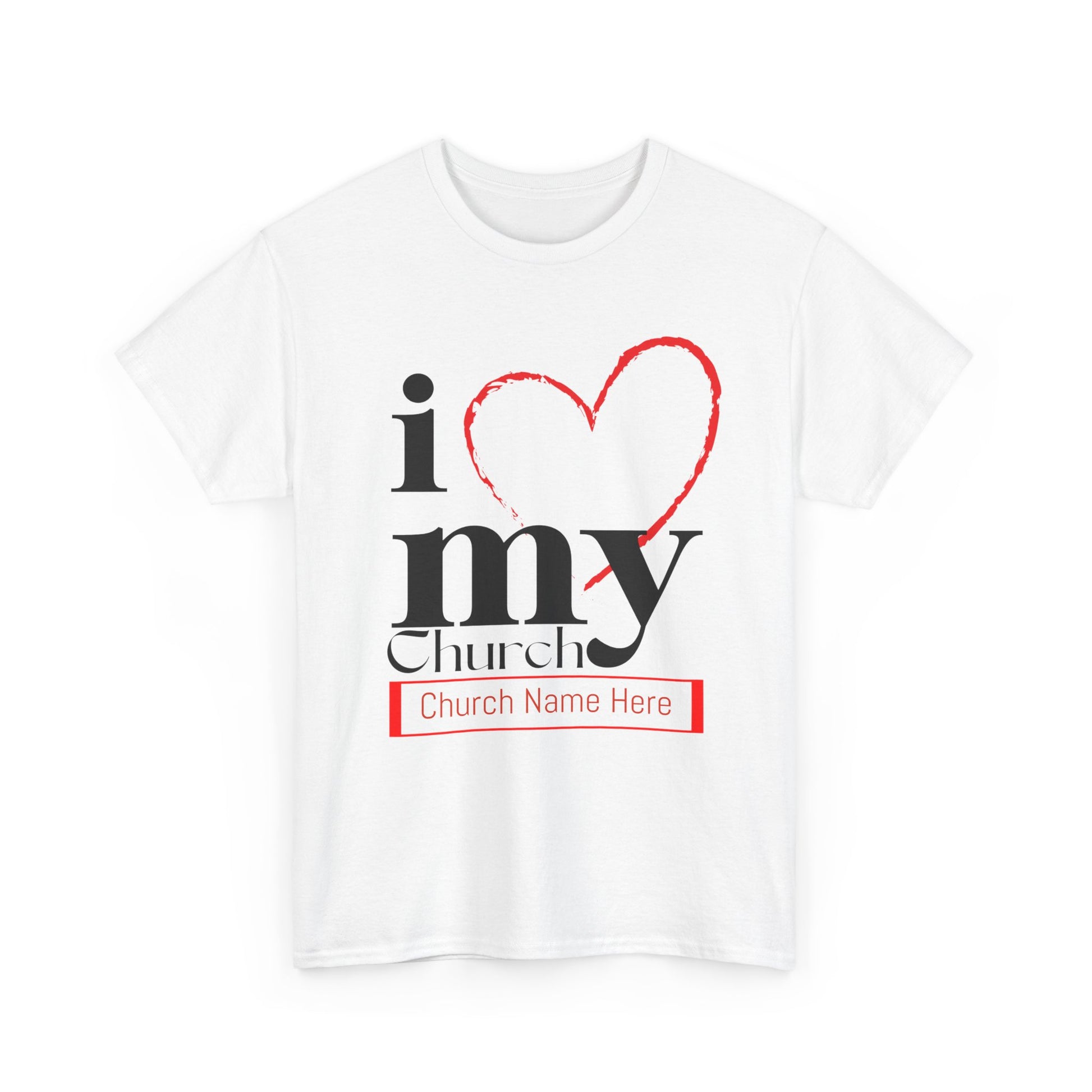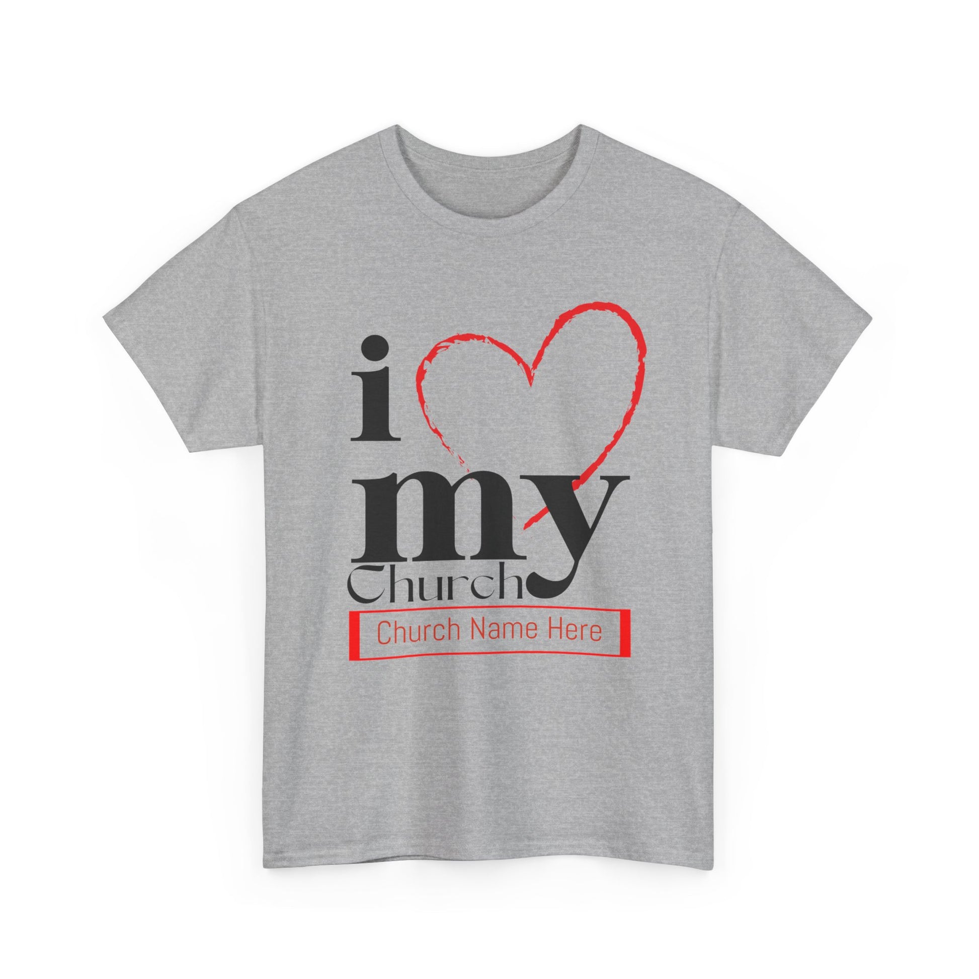 Customizable I Love My Church Unisex Heavy Cotton Tee, Faith-Based Apparel, Church Group T-shirt, Gift for Congregation, Religious Expression