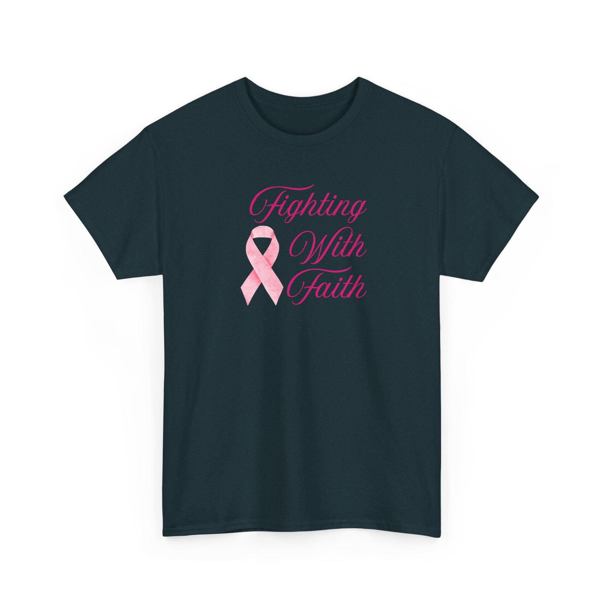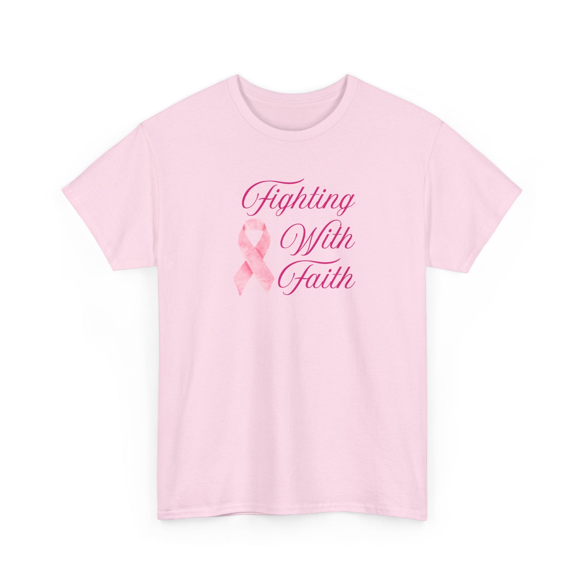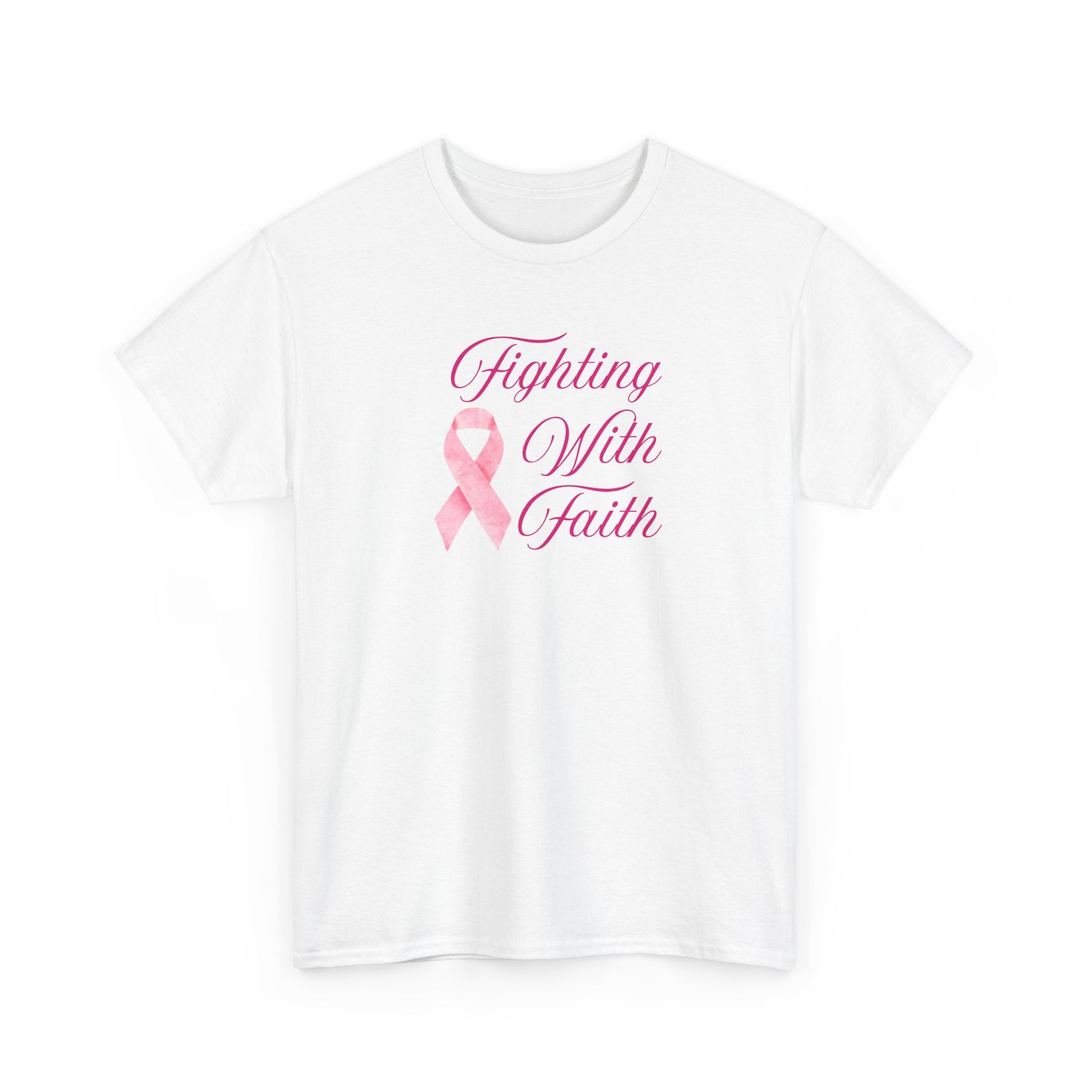 Fighting With Faith Pink Ribbon Tee, Support Breast Cancer Awareness, Unisex Cotton Shirt, Gift for Cancer Fighters, Inspirational Apparel