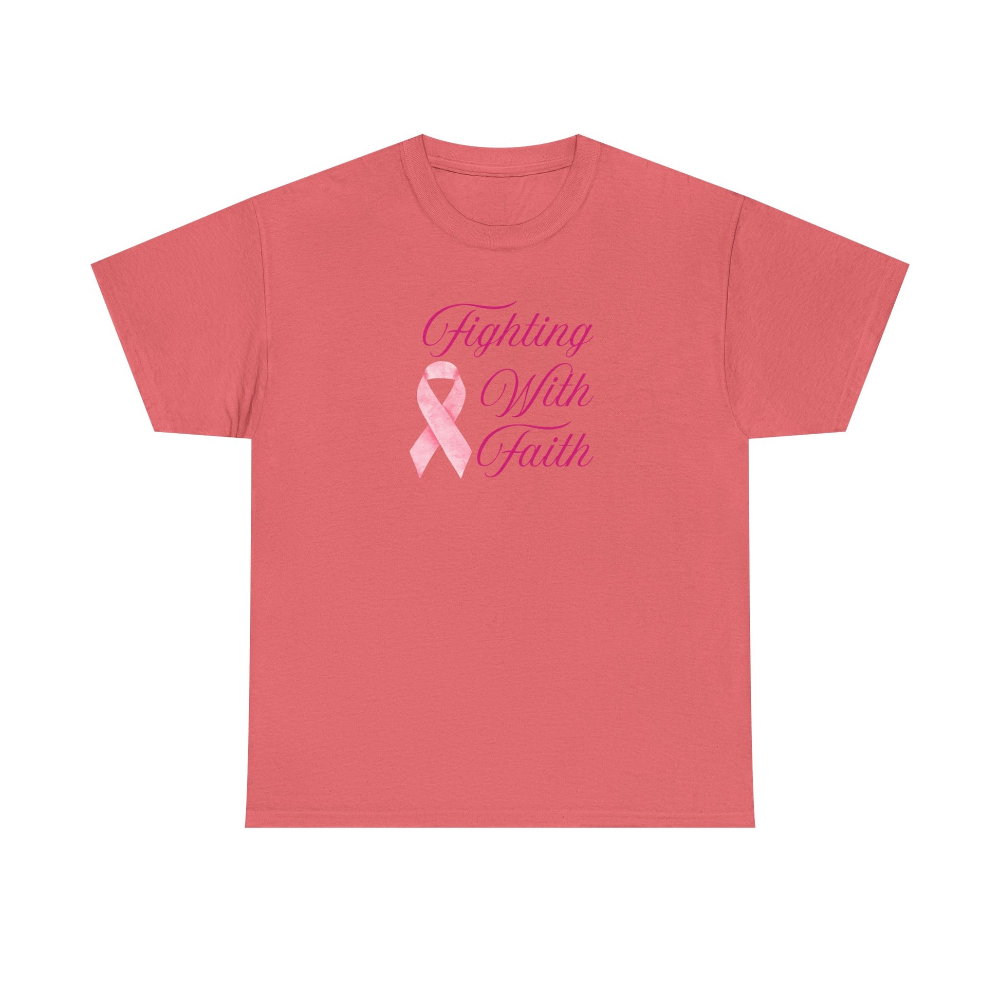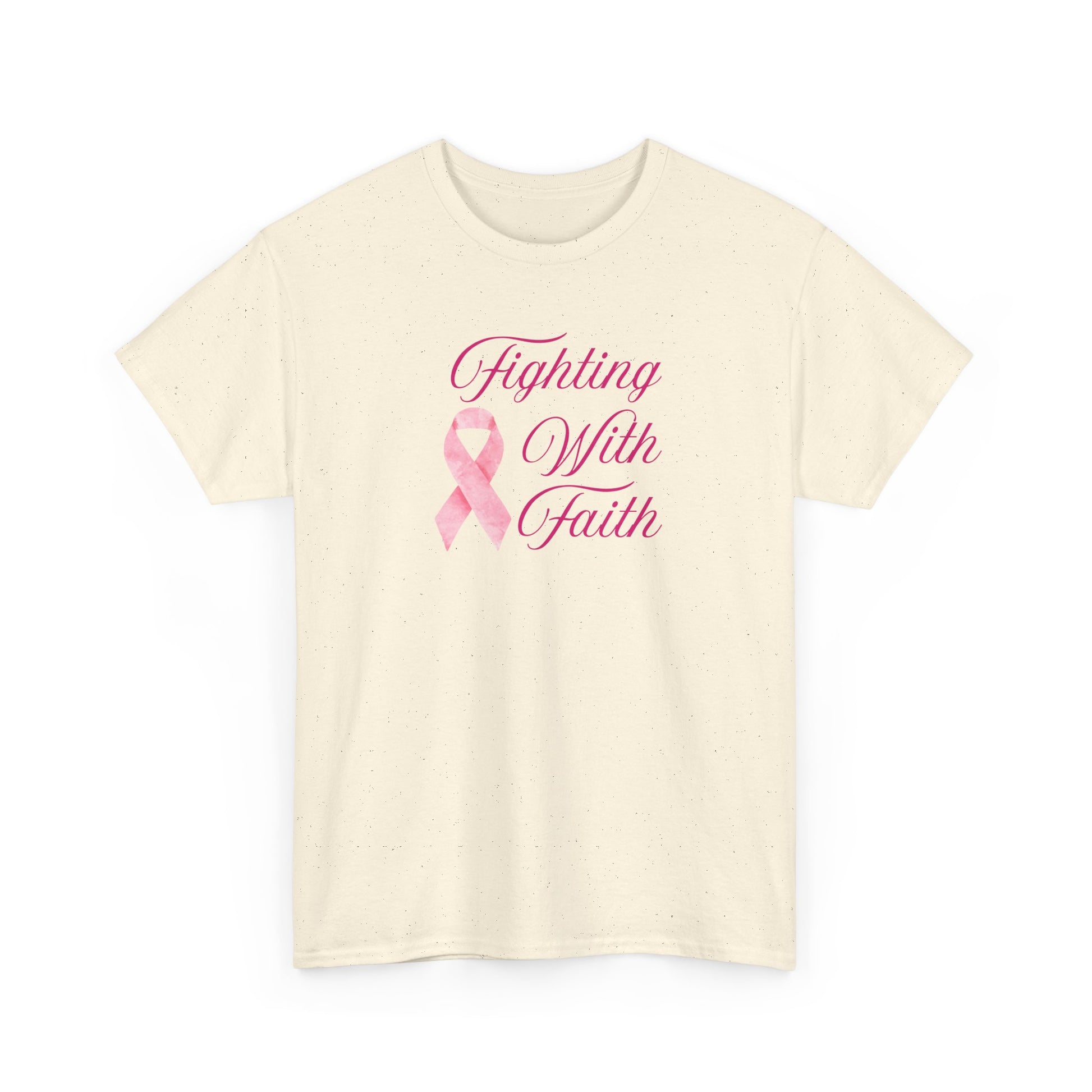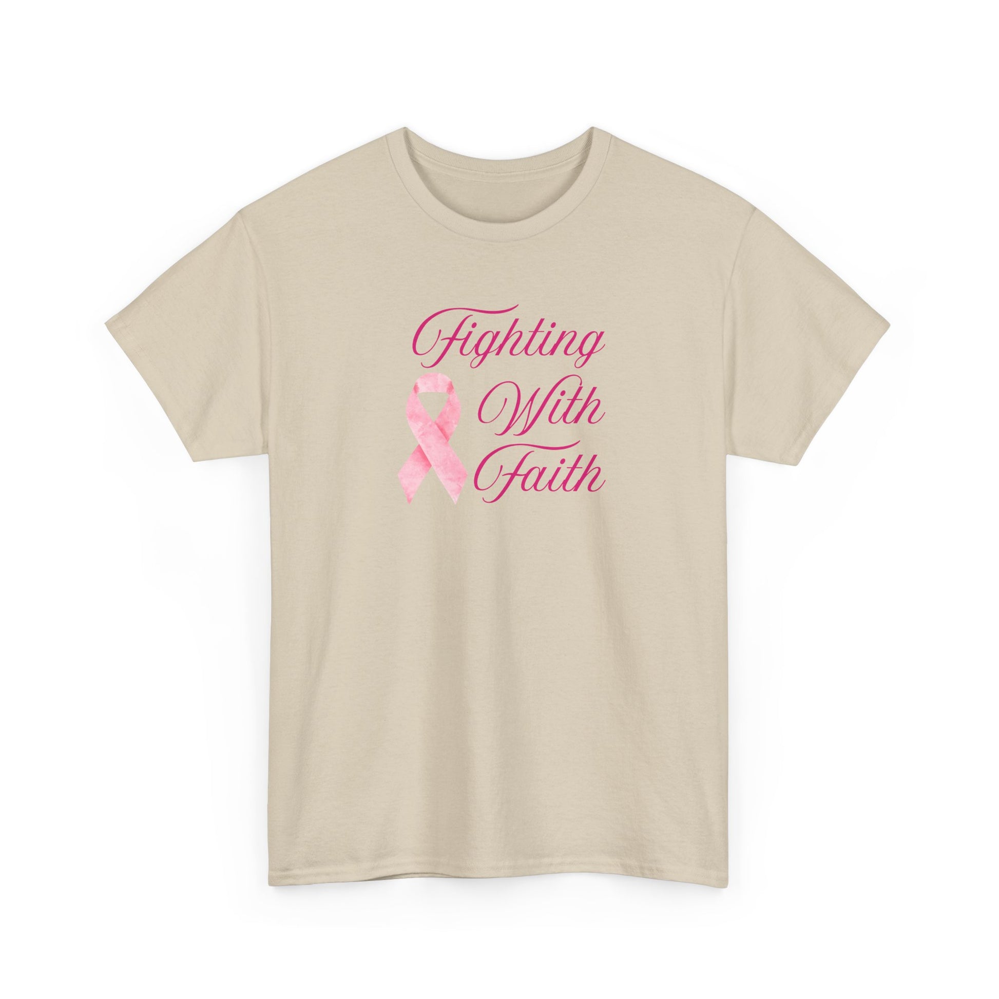 Fighting With Faith Pink Ribbon Tee, Support Breast Cancer Awareness, Unisex Cotton Shirt, Gift for Cancer Fighters, Inspirational Apparel