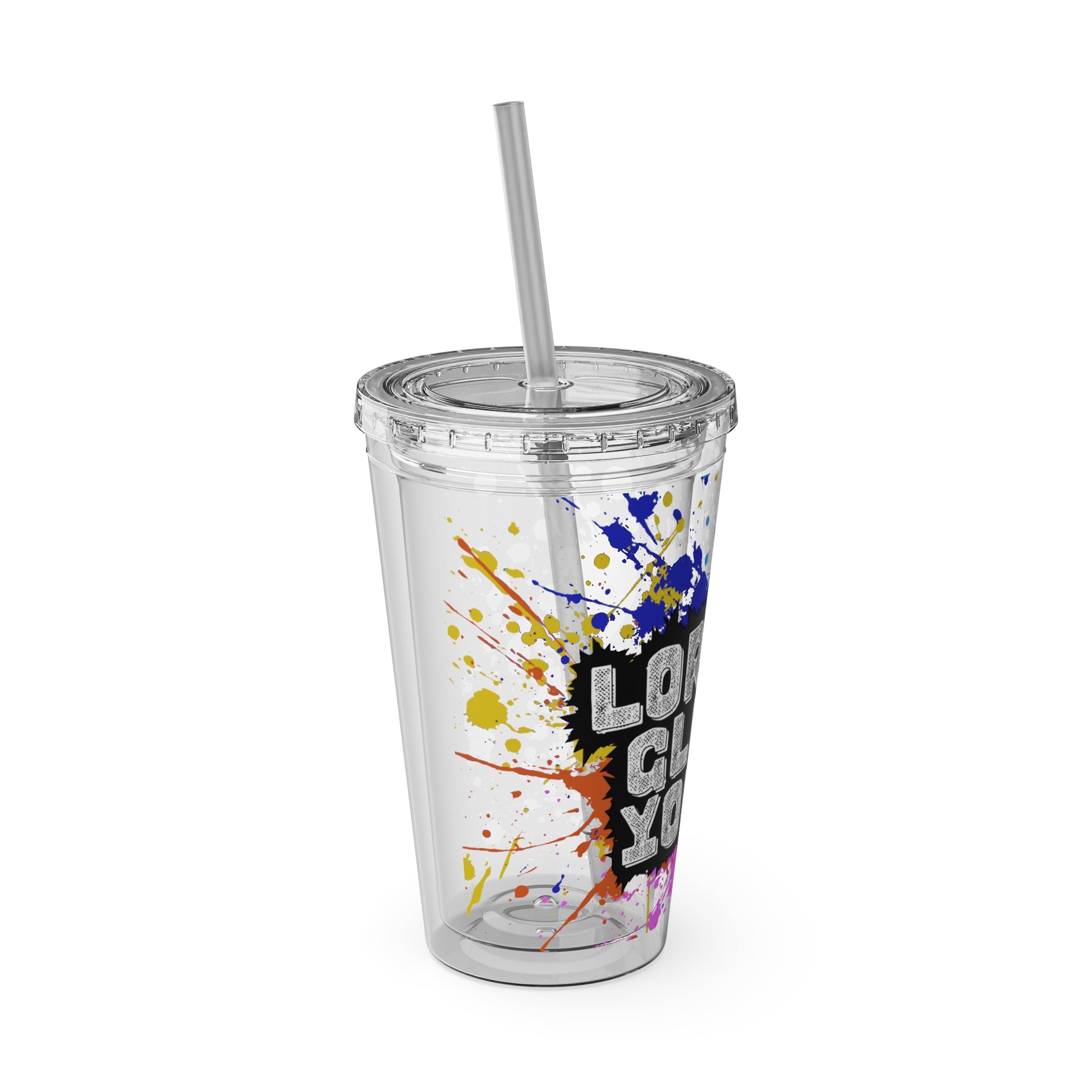 LOGColorful Youth Tumbler with Straw, Inspirational Drinkware for Teens, Summer Fun, Motivational Quotes, Birthday Gift