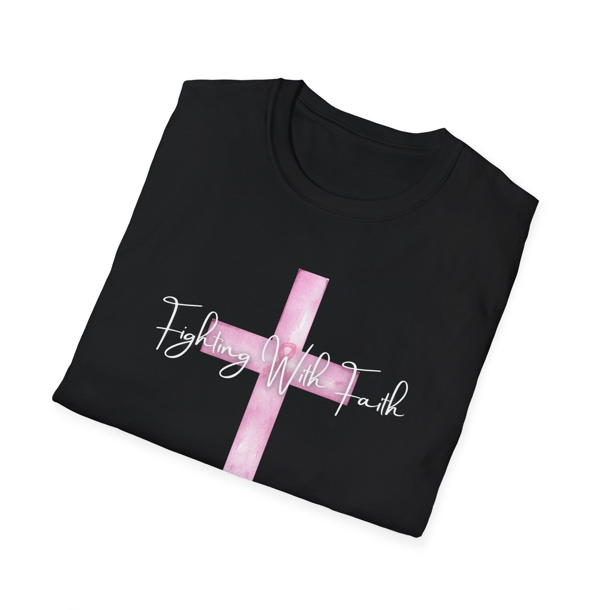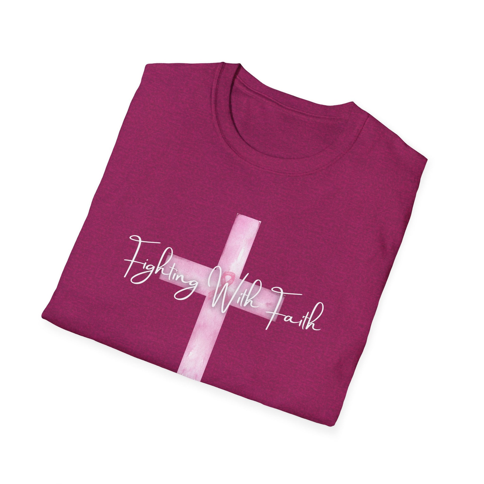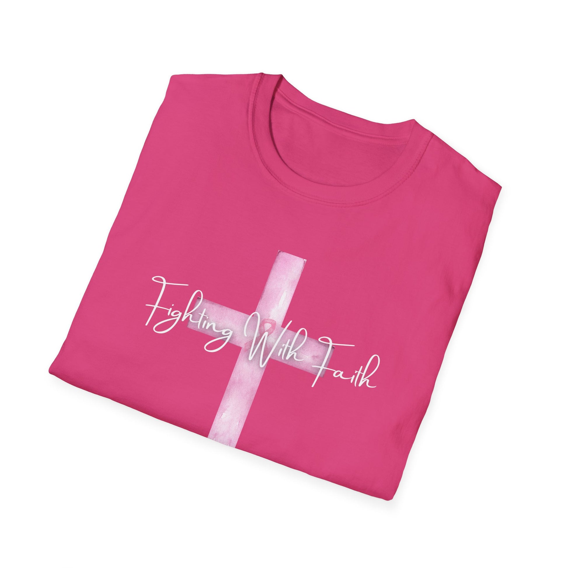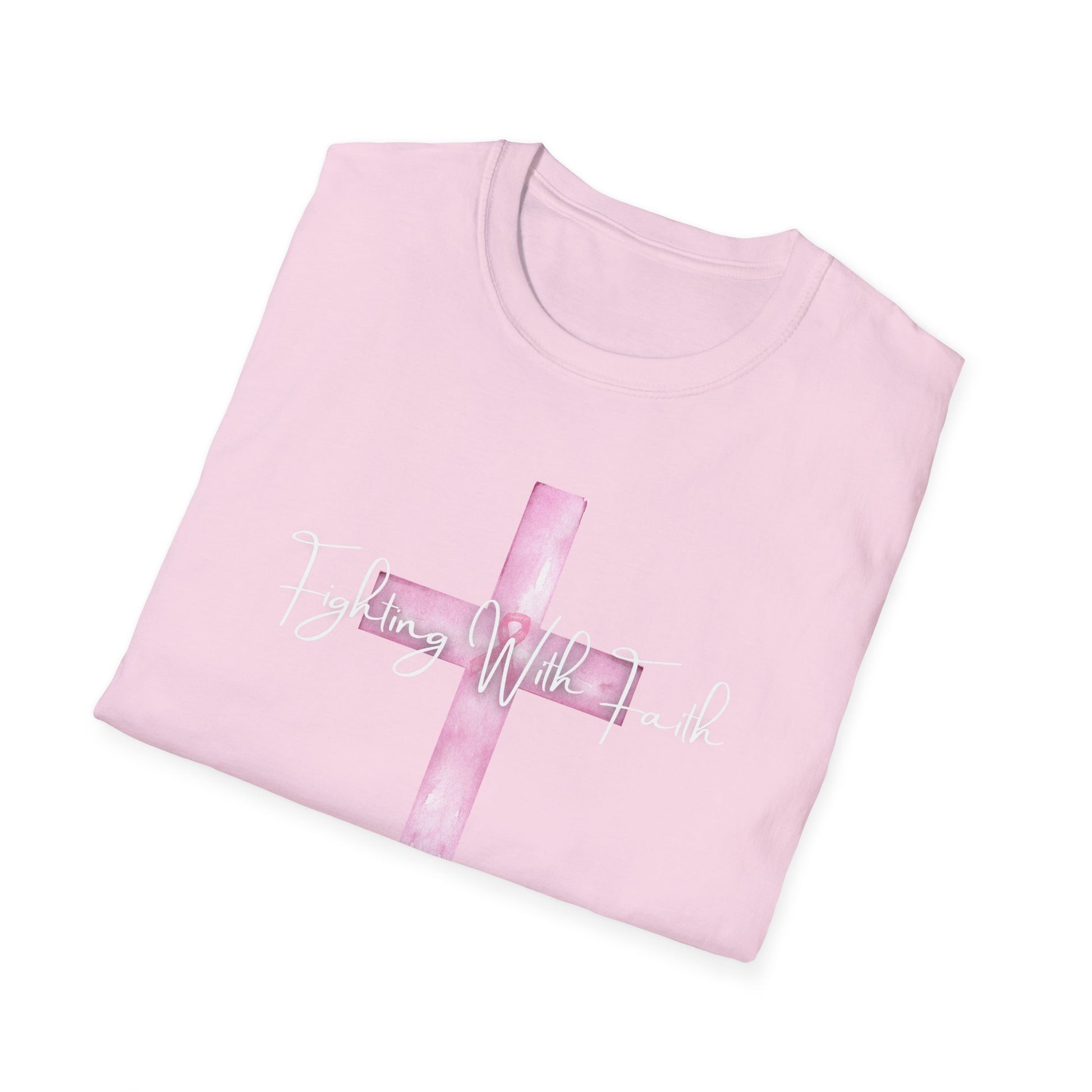 Pink Cross Fighting with Faith Unisex Softstyle T-Shirt, Faith Tee, Casual Wear, Christian Gift, Religious Apparel, Everyday Comfort